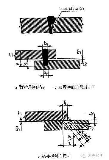 2. 激光焊接焊縫按照要求進行一些強制性的檢測,焊縫橫截面外觀尺寸參考DIN 32511進行,主要包括余高、熔深、熔寬、焊接深度、板材厚度等,參見圖1。